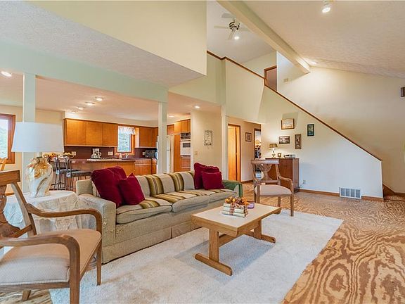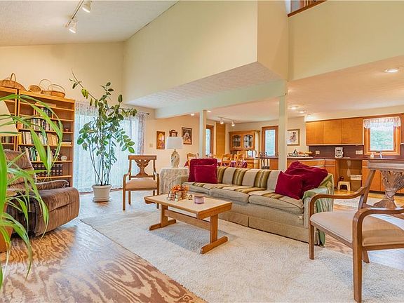 5.2 secluded, wooded acres is the setting for this soft contemporary 1 and 1/2 story home. Enter into the great room through a vestibule. A wall of windows allows an abundance of natural light in the great room, kitchen and dining area. 2 bedrooms and a full bathroom on the first floor, and 2 oversized bedrooms, a second full bathroom, and a loft over looking the great room can be found on the second floor. The lower level is a walk-out, and has many possibilities. It offers a second kitchen a third full bathroom, two other rooms that could be used for bedrooms or office space, laundry and utility areas, and access to the 1 car attached garage. This home needs some updating and some TLC, but is clean and well maintained. There is an older home inspection report and a recent follow up report, both will be on display in the property for showings. PLEASE do not remove them when viewing the property. Being Sold AS-IS. No FHA or VA.