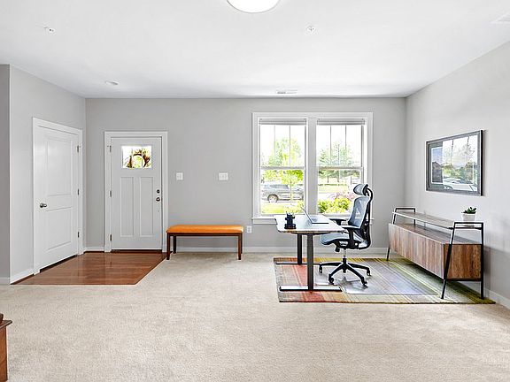 Gorgeous, nearly new end-unit townhome in highly sought-after Villages of Urbana facing the community park! Rarely available Quincy model features entry-level rec room which perfectly doubles as a home office! Upgrades abound throughout all three finished levels... gleaming hardwoods, upgraded kitchen cabinets, quartz counters, and oversized island. Enjoy morning coffee on your entry-level front porch, and an evening glass of wine on your second-story porch {also the PERFECT place to view 4th of July fireworks!} Master suite boasts large walk-in closet, upgraded shower tile, and quartz vanity. Hall bath enhanced with upgraded tile. Bedroom level washer/dryer. Custom window blinds, neutral paint and more! Perfectly situated with optimal proximity to park, schools, future pool/fitness center, and retail! Why wait for new when nearly new is available now?! Welcome to 3233 Stone Barn Drive... welcome HOME!