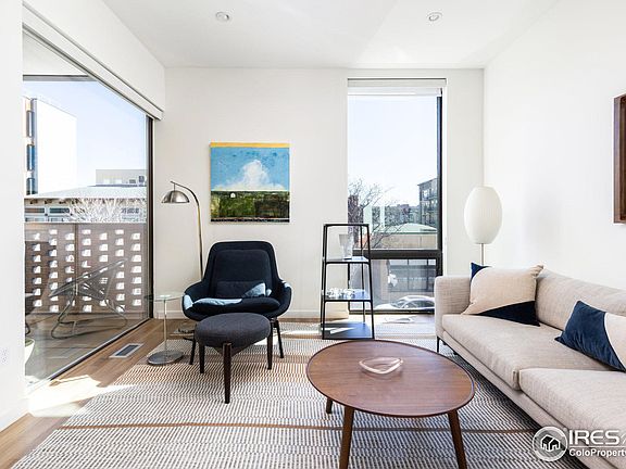Step into this impeccably designed 2-story walk-up townhome style condo in the vibrant Lower Highlands, where modern European finishes meet effortless urban living. Amazing design functionality with only one shared wall and no one living above. Modern high-end European finishes and ample natural light, the open floor plan boasts soaring 12-foot floor-to-ceiling windows with custom Hunter Douglas blinds, creating a bright, airy vibe. A Design Within Reach dining fixture and Blu Dot pendants highlight the 10-foot quartz island in the gourmet kitchen, complete with a Bosch induction range, Fisher & Paykel counter-depth fridge, and Bosch dishwasher & microwave. Fresh COREtec flooring and plush wool carpet add warmth and style, while the master suite features a spa-like bath with a custom glass walk-in shower, Italian tile, and sleek vanity. The first-level bedroom bath suite is the perfect setup for guests or healthy separation between your home office and living space. Enjoy morning coffee or evening cocktails on your covered balcony, with reserved covered parking right at your doorstep. Just steps from Method Coffee, Lady Jane, Alma Fonda Fina, Kumoya, Senor Bear, and Ash'Kara, this lock-and-leave gem boasts an impressive Walk Score of 88-putting the best of LoHi right at your fingertips. Don't miss this one-of-a-kind opportunity!