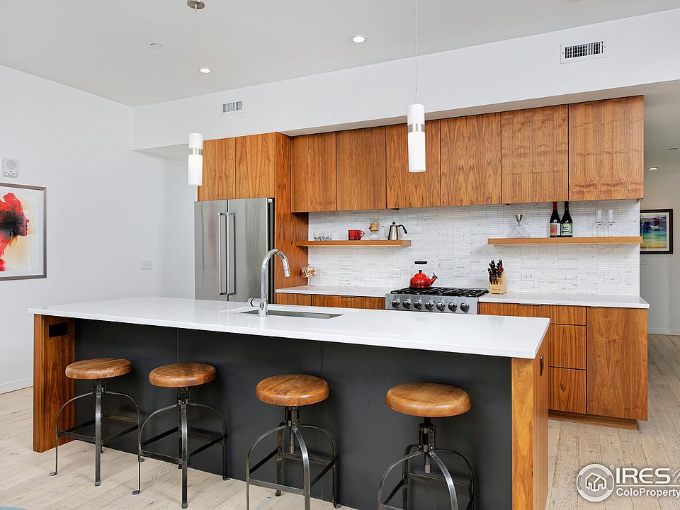 Amazing modern condo in one of the best locations in Lower Highland. Rare corner unit boasts 3 walls w/floor to ceiling windows=abundance of light.This unit doesn't share any walls w/other condos. Best of city living w/accessibility to all that LoHi & Downtown Denver have to offer. Stunning modern exteriors & thoughtful layout/orientation.Designer European finishes,quartz countertops,SS appliances,walnut flat panel cabs,beautiful hardwoods.Incredible lrg corner deck=amazing outdoor living space.