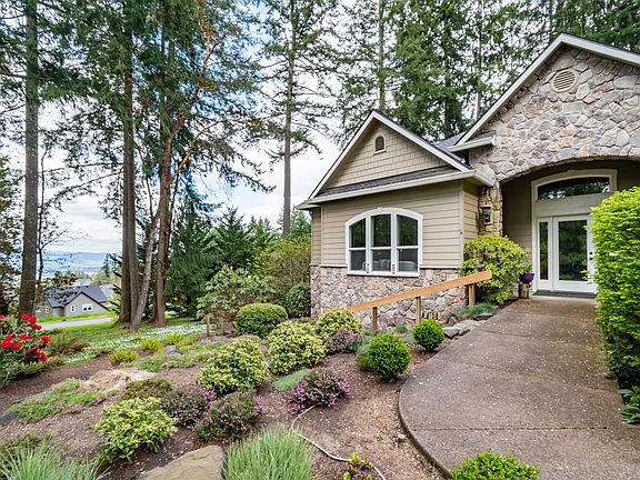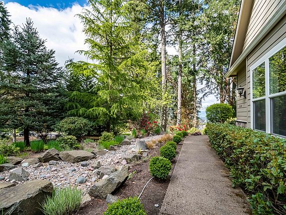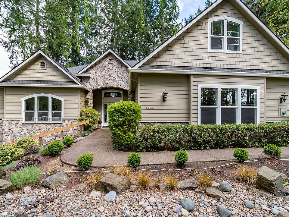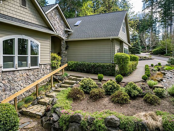 Rare, in-town estate acreage at top of hill in southwest Eugene! First time on the market & owner an architect. Main level living home privately tucked away behind a gate that is shared by only 2 other neighbors. The home is very warm & inviting because of all the natural light coming in from abundant windows (Cut glass, energy efficient dual pane) & several skylights/solar tubes throughout. Beautifully maintained. The entrance welcomes you with high ceilings opening into the vaulted, columned & open living room, dining room, kitchen area with 2 fireplaces, built-ins & wall of windows overlooking beautiful back patio & garden paradise. Nature virtually surrounds this home with beautiful views from each room while giving privacy, healing & daily inspiration. The spacious kitchen has all stainless-steel appliances, granite, large island, & abundant storage. Generous primary suite with fireplace, seating area, slider to patio, & luxury bathroom with granite counter-tops, jetted tub, & walk-in shower, huge walk-in dressing/closet area. Also on main level, are 2 bedrooms, 1 currently used as office with shared full bath. Utility room with storage & utility sink completes the main level with entry to the ample 3 car garage/gym. Upper level you have bedroom, bath & larger family/living area. The entire upstairs bedroom is ideal for kids, renters, guests, caretakers, office, game/entertainment rm, larger dormer bedroom. Can be split easily into 2 bedrooms, great room, or wonderful hideaway! Large, covered patio area plumbed with gas to enjoy the private setting & the feel of nature retreat from the city while still in the city limits. Reading garden & a front, back, side wrap around nature area can be your very own nature preserve or spot for a private pool or hot-tub. Sound system, central vac, well-maintained HVAC system, newer microwave & refrigerator, cork, travertine, and luxurious carpeted floors throughout. Direct access to Iris Ridge Trail & hiking area.