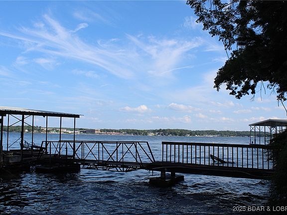 Lakefront Home with Stunning Views, Three-Well Dock & Endless Potential! Experience lake living with this 3-bedroom, 2-bathroom home featuring a bonus room and year-round views of the Lake of the Ozarks. Tucked away in a quiet inlet at the 7 MM of the Main Channel, it offers privacy while being just minutes from waterfront restaurants and attractions. Inside, enjoy vaulted, hand-hewn wood ceilings, an open concept living area flowing into the kitchen, and two charming stained-glass windows. Two decks overlook the water, perfect for entertaining or relaxing. The lower level includes a second full kitchen, large living area with lake views, and fireplaces on both levels. While updates are needed, the home provides a solid foundation to create your dream lake retreat. Outside, a three-well dock with swim platform and wet steps awaits, plus a one-car garage with extra storage underneath. This property combines space, views, and location for the ultimate lake getaway.