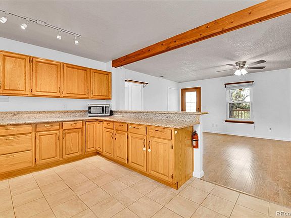 Welcome to this charming ranch-style home nestled in the serene community of Pine Crest Estates. With three spacious bedrooms and two full bathrooms, this 1,413-square-foot property is ideal for families or anyone seeking a peaceful retreat amid the picturesque surroundings of Kiowa, Colorado. The home boasts an open floor plan, with a large kitchen, dining area, and a cozy living room centered around a wood-burning fireplace—the true heart of the home. The remodeled kitchen features abundant oak cabinetry, granite countertops, and stainless steel appliances, perfect for any cooking enthusiast. The primary bedroom serves as a private sanctuary, complete with an en-suite bathroom for added comfort, while the additional bedrooms provide ample space for family or guests. The generous laundry room doubles as a storage area, and the large west-facing deck offers a tranquil spot to enjoy views of the wildlife that frequently pass through. The property includes mature pine trees, a detached carport, and two storage sheds, providing both natural beauty and functional space. Experience the tranquility of a home free from city lights, ideal for stargazing, and just minutes from Elizabeth with convenient amenities like Walmart, Safeway, restaurants, and more. This property is more than a home; it's a lifestyle!