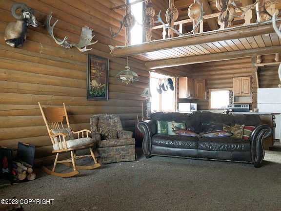 Large log home on 1.28 acres ready for your touches. Home has a nice large, open floor plan with a master suite loft. Large kitchen and living room. Private covered decks off the back of the home. Septic, electric, well installed. Home was bought while under construction & has since been used as a summer retreat. This is an estate sale & the property is sold AS IS. Property is nice & private.