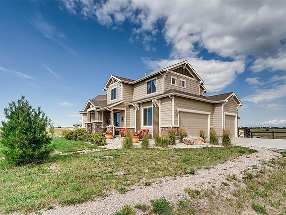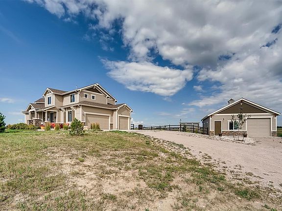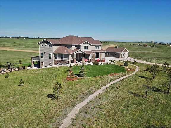 Presenting a Gorgeous GJ Gardner Custom Home in the Reserve at Wild Pointe! Just minutes from Franktown, Parker and Castle Rock, this luxurious two-story retreat sits on 5 beautiful acres overlooking rolling green hills with unobstructed Pike's Peak views. Featuring five bedrooms, six baths, formal study, dining room and main floor guest suite. Gourmet kitchen features slab granite countertops, custom cabinets, gas cooktop, center island with addtl prep sink. Kitchen opens to the soaring ceilings of the great room with fireplace, abundance of natural light and views! Private Master Suite features soaker tub, custom spa shower and walk-in closet. Multi-generational living with the fully finished basement includes a full kitchen, living room, laundry room, bath and additional sixth bedroom (non-conforming). Separate entrance for guests or parents needing extended stay. 832 sf barn/garage with concrete floors. Home Extras: Designer Paint, Hardwood Flooring, Front Courtyard, Covered Back Deck, Chicken Coop & Fenced Garden Area. Welcome Home!