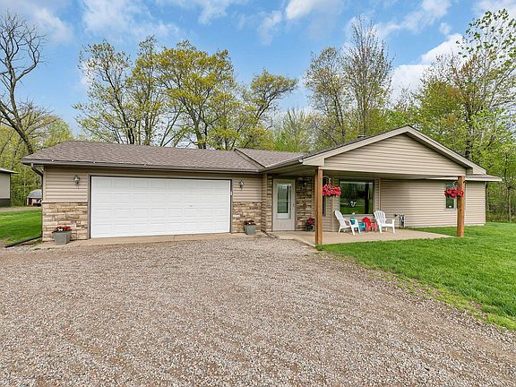 Hard to find one level home, 2 bedroom and full bath. 2 car attached garage. Well cared for home. Newer interior paint, carpet, vinyl and kitchen appliances. Nice land with mature trees and a pond. 30x60 storage shed with 14 foot side walls. 14 foot wide and 12' 6" tall fully insulated door.