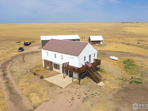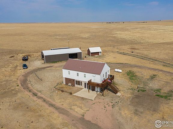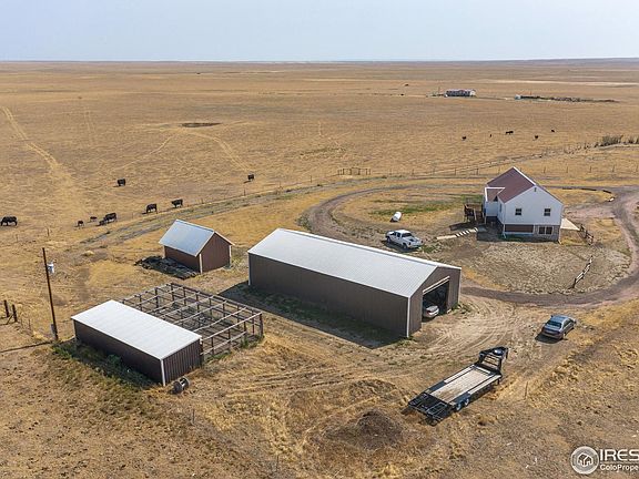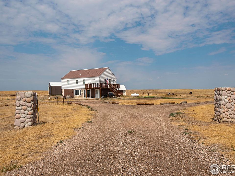 60 acre Ag property with no covenants 15 minutes East of Ault and a short drive to Fort Collins, perfect for that livestock enthusiast! Full use domestic well, R.E. eligible which allows property to be split, mountain and Pawnee Grassland views, fenced and cross fenced. Home has a Country style Charm with 3 bedrooms 2.5 baths, updated kitchen, master suite, newer pellet stove in family room, fiber optic allowing great internet speed, large pole barn, storage shed, and chicken coop built on skids