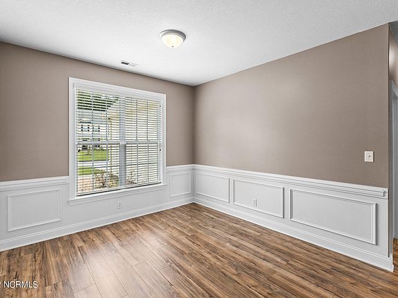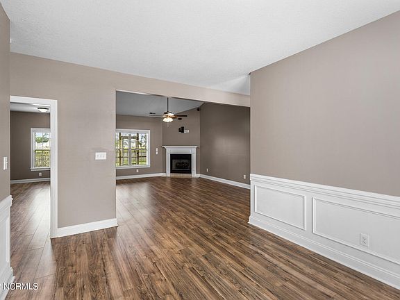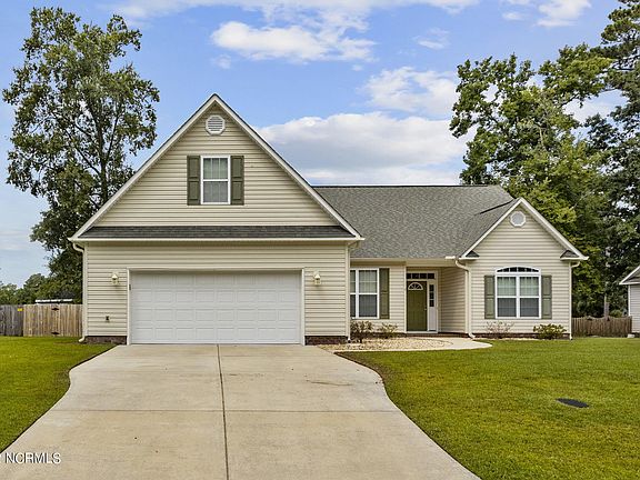 Looking to live mostly on one level just minutes from New Bern's historic district? Comfortable move-in ready home in Longleaf PInes is new to market. Notice the generous space between adjacent homes on either side, the good sized driveway and the stone filled landscape beds surrounding the sidewalk. Enter to soaring Cathedral ceiling in Living Room and maintenance free LVP flooring throughout most of main level. Spacious living room with ceiling fan and gas fireplace leads to eat-in kitchen with stainless steel appliances and plenty of storage. Bright formal dining room provides space for family dinners. Surround sound speakers and wiring in living room and to screen porch. Gracious master suite features walk-in closet, dual vanities, tile floors, jetted tub and separate shower. On opposite side of the home two bedrooms and a hall bath are great spaces for guests or a 1st floor office. Ceiling Fans are in all bedrooms. Bonus room or 4th bedroom is the only carpeted room in the home. Tiled floors in the laundry and both bathrooms. Step out side to your screen porch and fenced back yard with peaceful views of the pond. Desirable Creekside Elementary School District and convenient to MCAS. This beautifully maintained home is ready for you. Don't miss it!