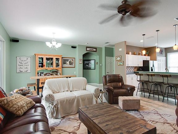 Lovely and well maintained 3/2 home in lovely Carillon Lakes. The inviting open floor plan is nice and bright with a wonderful view of the nature area behind home. No back yard neighbors here. The spacious kitchen welcomes the home cook with plenty of cabinets, counter space, a tile backsplash, breakfast table space with window view, pendant lighting over the countertop and bar stool area. The master bathroom features a garden tub, separate shower, dual sinks and double closets. Flooring is nice wood laminate or ceramic tile in all areas. Additional updates include double pane windows, extra attic insulation, extended garage, brick paved patio and 2014 air conditioner. Carillon Lakes is a pristine community offering resort style benefits including a security guard at the entrance, manicured landscaping, lighting and sidewalks, a large clubhouse, swimming pool and spa, fitness center, tennis and basketball courts, playground, walking trails and lake access for fishing. A short distance away are retail shops, restaurants, movies, golf, medical facilities and I-4 interstate access to Tampa, Orlando and Florida beaches.