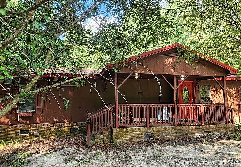 Unique Fixer upper in the Harnett County rural countryside on 3 Acres +/- located between Broadway and Lillington. Needs some TLC. 3 bedrooms, 2 and 1/2 baths. This cabin looking single wide mobile home has a room addition that is well blended to look like a double wide home. Real hardwood flooring and real wood planking on the walls and ceilings in part of the addition. Large deck on the back and a storage shed at the end of the paved driveway. The inground pool is currently not usable but could be brought back to service. Currently has water and electricity. No Permits on Record for the addition or other improvements.