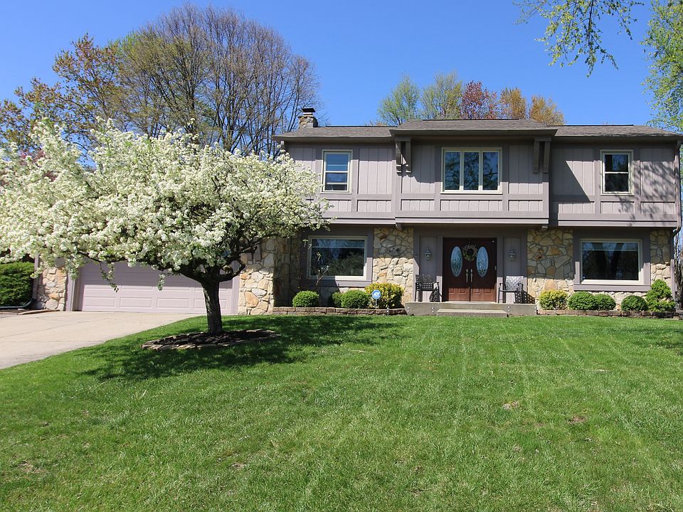 Nestled in a charming Carmel neighborhood on a quiet cul-de-sac, this well-maintained, updated 4 bedroom, 2.5 bath delightful two-story home is the definition of move-in ready. The main level features a functional layout with a cozy living room and flex-space/family room, a modern formal dining room, and an updated eat-in kitchen with cambria countertops and stainless steel appliances. The large picture windows along the south face of the home allow abundant natural light to stream in. Upstairs, you'll find 4 spacious bedrooms, including a large primary suite with an ensuite bathroom and walk-in closet. Downstairs, you'll discover a finished waterproofed basement perfect for a kids' or adults' retreat or movie/game nights, with a family room, office space, exercise area and/or playroom plus an unfinished storage area. The backyard is an entertainer's delight with a screened-in porch, a fully fenced-in yard, and new deck. So many updates since 2020: new roof, new carpet, new flooring throughout, new kitchen cabinets w/Cambria countertops, new appliances, new lighting throughout, new sump pump w/back-up, new six-panel doors, Leaf Filter gutter guards, new attic insulation, new furnace, new A/C, a new backyard deck, new powder room vanity, and a lifetime window warranty. Minutes from Carmel's City Center, Arts and Design District, and the downtown Monon entertainment corridor. Must See! This one will go fast.