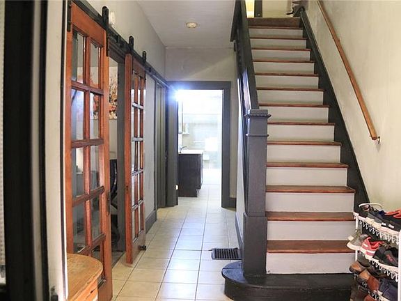 Envision yourself on this charming front porch relaxing and enjoying the nice weather. Step inside to a warm, and lovely home, with spacious room sizes. The LR has French doors, hardwood floors, and decorative brick, that opens into the DR, with a lovely, original FP mantle. Continue on into the large kitchen, with SS appliances, attractive subway tile backsplash, and ceramic tile floor. There is also an updated full bath on the first floor. The three bdrms on the second floor all have hardwood floors, and the master has a beautiful bay window, and original decorative FP. The 3rd floor has two large bdrms, or they can be used for whatever flex space you need. The bsmt is partially finished, which offers additional useful space. Convenient to town, hospitals, universities, etc. Just a great house!