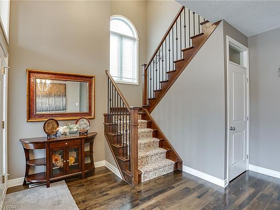 Beautiful 4 bedroom home with 3.5 bathrooms will sure to fit your family needs. Located in beautiful Andover Trails. Close to shopping, parks, schools and quick access to 401 /402. Gorgeous kitchen with granite counters and a large island. Family room with gas fireplace will sure to keep you warm during the cold weather. Spacious master bedroom with tray ceilings, walk in closet and 5 pc ensuite. 3 other good size bedrooms and 4 pc bath. Finished lower level with a family room, den, and a rough in complete for a wet bar or small kitchen. Rough in central vac, humidifier installed 2 years ago. Carpet upstairs installed September 2020, sump pump. Nicely landscaped, fenced in yard with 3 tier stamp concrete patio. Stamp concrete double drive, double car garage with inside entry.