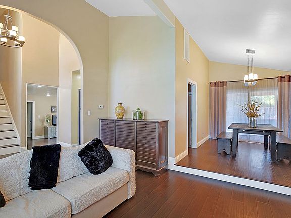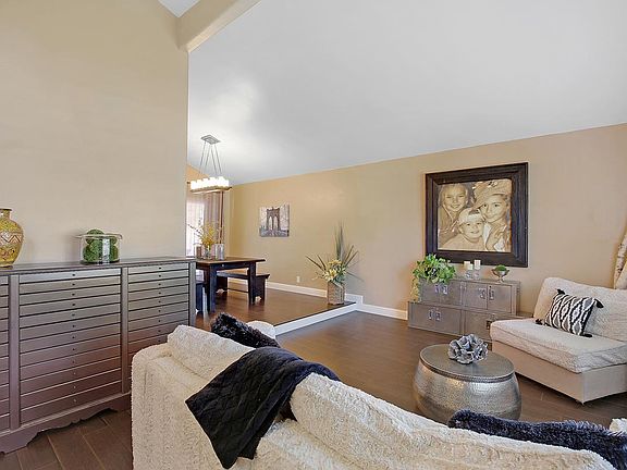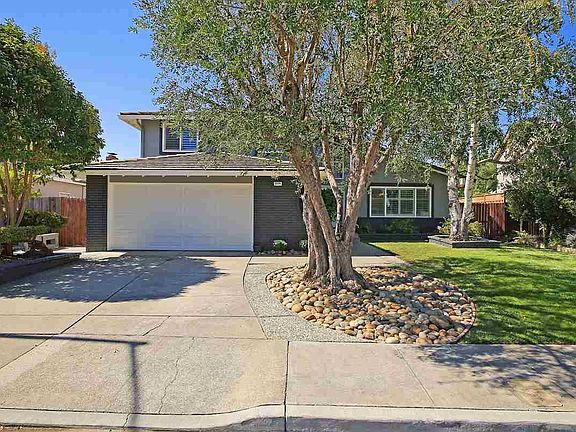 This beautiful home is located in the desirable Pleasanton Meadows neighborhood. Premium location, with end of court access through the greenbelt to community cabana club pool, tennis courts, park, & Fairlands Elementary School. This home features a new 3 tone contemporary painted exterior, spacious indoor living area w/soaring ceilings, bright kitchen w/ recessed lighting & fans, beautiful plantation shutters, & luxury dark walnut laminate plank flooring throughout. Upgraded textured rounded walls, & textured ceilings. Nicely hidden roomy attic/storage space off the master bedroom. Spacious backyard oasis with raised covered patio, built in BBQ & bar, stamped concrete & pavers, gas fire pit area, & garden bed. HOA is paid annually.