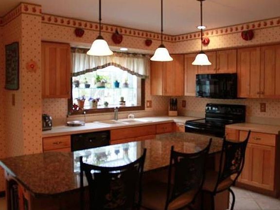 Go ahead & fall in love, this is a home memories are made of! Brick front colonial w/ front porch. Spacious foyer w/ hardwd & fresh paint, partial open stair w/ new carpet. Formal living rm has new neutral carpet & chair rail. Beautifully remodeled Eat in Kit. w/cabinet space galore. Gorgeous custom birch cabinets w/ pull out shelving, big pantry, spice drawer. Tile flr. Granite Island accomidates extra seating. Bosch DW, all appliances 6yrs. Double sandstone sink. great fixtures, garden window, sliding glass door out to heated sunroom. Formal dining rm has hardwd flrs w/ big windows. Family rm has pellet stove, brick, open beams. Office. Laundry rm w/ utility sink & cabinets. remodeled 1/2 bath. Upstairs has generous bedrms. Master is very spacious, 2 closets, remodeled master bath, tile shower. 3 other bedrms. big hall. Hall bath has been remodeled, granite topped vanity. attic storage. Fin. bsmnt. 2 car gar. roof 6 yr old, replacement tilt in windows. big deck, inground pool. Awesome yard. Private setting.