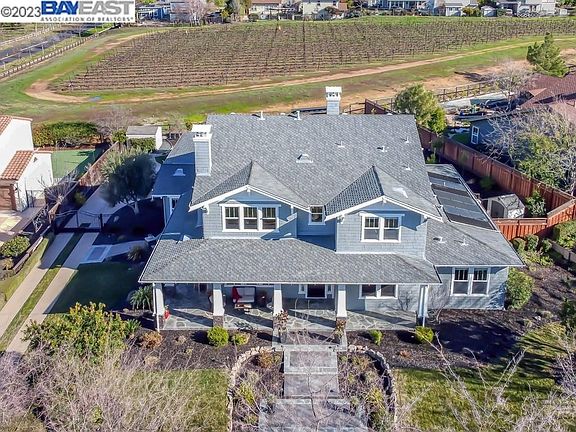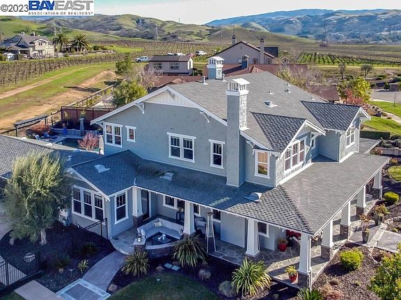 This stunning Craftsman style home is perfectly situated in one of South Livermore's most desirable neighborhoods. Nestled in a court, this 4,479 sq ft home sits on a nearly 19,000 sq ft premium lot. Upon entering, one is sure to be impressed by the exquisite hardwood floors both upstairs and down. The modernized stairs and custom iron railing lead to a beautiful master bdrm suite with stunning vineyard views. There are three additional bdrms (1 upstairs and 2 down) each with its own private en suite. This contemporary beauty has an abundance of natural light and is perfect for family and entertaining. The stylish chef's kitchen with its updated cabinets, large oversized granite island, wolf sub zero refrigerator and appliances is truly a dream. The Unique, glass enclosed, 480 bottle refrigerated wine cellar is a show stopper. Professionally landscaped yards both front and back include wrap around porch, automatic gate with remote entry, salt water pool with beach entry and new pool equipment, sleek outdoor kitchen, gas fireplace, 2 pergolas and alluring hardscape. OPEN HOUSE 1-4pm SAT and SUN