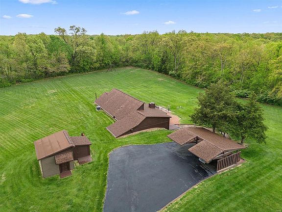 Charming 3-bedroom, 2-bath home nestled on 6.64 serene acres offering privacy and tranquility in the desirable Wentzville School District (North Point). Spanning 2,236 sqft, this unique residence features soaring cathedral ceilings and abundant Pella windows that flood the space with natural light. Enjoy the spacious kitchen boasting a functional peninsula and solid oak cabinets. The second bedroom includes a loft, ideal extra storage. Stay cozy with the efficient wood-burning stove. This property also includes a fully insulated storage shed and plenty of room to build your outbuilding. Up to 4 horses are allowed on this property. Priced to allow updates, this home presents a fantastic opportunity for you to infuse your style and enhance its value. Discover the potential and charm of living in this peaceful, nature-blended home. You will fall in love with this lot!