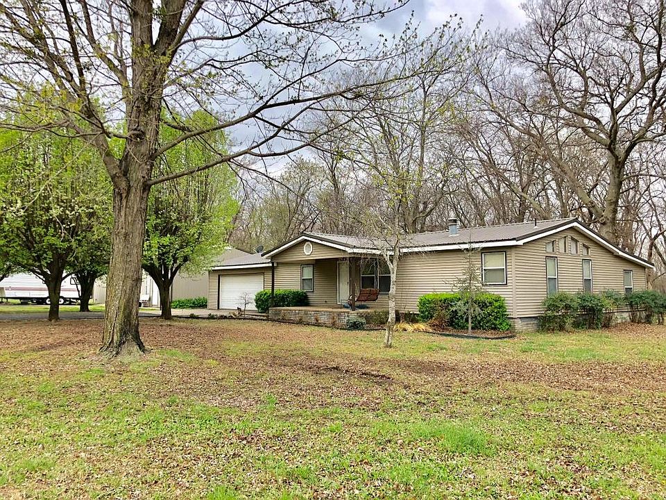 3bdrm/2ba doublewide offers updated bathrooms, flooring, fixtures and an added living/den room. Step out to a landscaped patio area and enjoy a private nature setting. Attached 24x28 2 car garage offers lots of storage, 30x50 shop that has a workshop area, a 9x9 storm shelter and a small section of shop has a full service beauty salon with 3/4 bath. Salon could easily be converted into a mother-n-law suite. Fenced dog pen area on backside of shop. Property is approx 1.5 acres/mol. Lake access just down the street and close to Ketchum/Cleora conveniences.