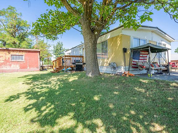 This 1972 double wide, 2 bed, 1 bath comes with 3 yrs new fridge, stove/oven, wood stove, water treatment system, new front deck, 1 car garage w/ opener, tool shed, cellar (both have power), pump house, chicken coup & 5 acres! Owner replaced kit sink, painted, added storm windows and says power bill is great (ave $75/mo). Owner likes to be comfortable with heat and A/C. State Water Rights Discovered! Call today, priced to sell!