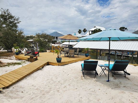 PLEASE NOTE THIS IS A GATED COMMUNITY- YOU WILL NEED TO CALL THE NUMBER BELOW TO GET A PASS FOR THE OPEN HOUSE! Reminiscent of a beachside cottage, this Ono Island home surrounded by Heritage Live Oaks offers lots of personality. Home is built with durable essentials: concrete board, metal roof and Chicago brick pathway leading to the 121 sf front porch. Airy interiors seamlessly embrace the great outdoors with two nice screened courtyards: one leading from the dining room inviting outdoor entertaining and a second private courtyard aside the master suite providing a tranquil spot for relaxation (503 total sf of courtyards). With a nice indoor/outdoor setup, this home provides a functional, open flowing floor plan for lazing on the water or entertaining guests. Home conveys FURNISHED with a bonus storage room plus a loft large enough for a home office. Home has NEVER EVER FLOODED. It's time to make your dreams come true. Access to pool and fitness center $500/ year and paid through 2023...LOTS OF UPGRADES- Exterior paint 2021, 2 NEW HVAC 2021, SEAWALL/ DECK/BEACH, 10K HI-TIDE BOATLIFT 2021, GRINDER PUMP, NEW GUTTERS, NEW WASHER AND DRYER PLUS ADDITIONAL DRYER*** buyers agent 2%