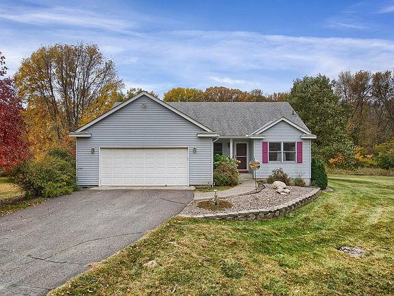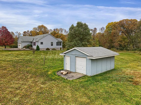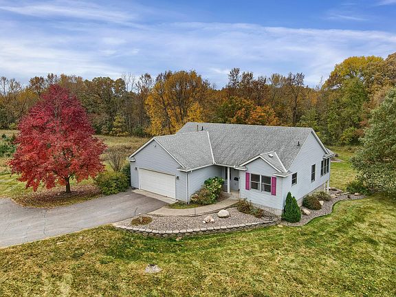 Beautiful 5 acre property with one level living & walk-out. Large kitchen, formal dining room, sunroom, living room with pan-vault & gas fireplace, French doors to master bedroom with walk-in closet and large walk-through bath. Main floor laundry and access to attached 2 car garage. Walk-out level has 2 bedrooms, full bath, family room, sauna, work shop, mechanicals, & storage. 20x16 storage shed with overhead garage door. Roof replaced in 2015. Kitchen was designed so a dishwasher could be added on either side of the sink.