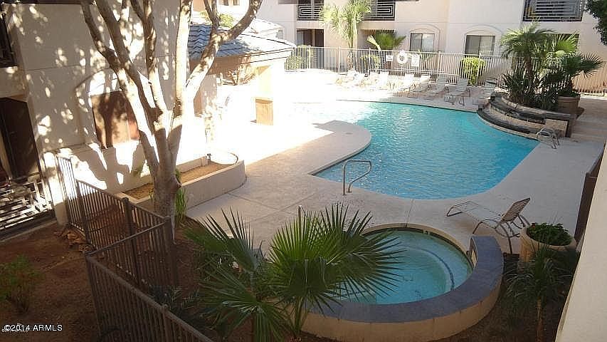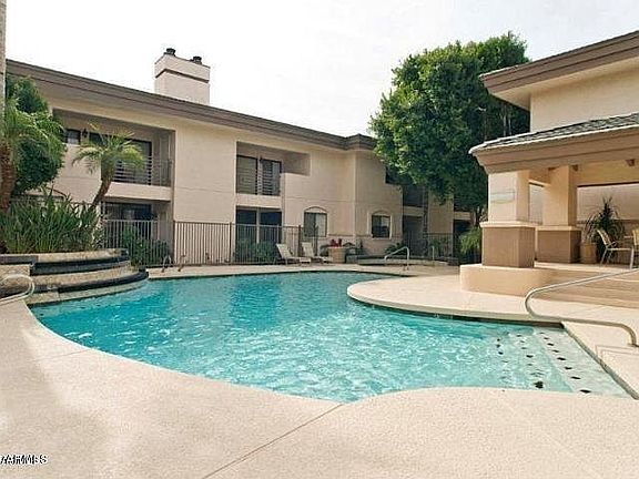 What a location!! Right in the Biltmore Corridor. Walking distance to great restaurants, such as First Watch, Tomaso's, The Tavern, Bobby Q's and more. Biltmore Fashion Park, just down the road. Scottsdale Fashion Square and Old Town, only a short drive away. One Bedroom with brand new carpet and remodeled Bath. Neutral light gray paint throughout. Travertine floors in living areas with real wood burning fireplace. Sunken living room gives great definition to the space!! Separate laundry room/pantry with front loading washer/dryer. Spacious storage closet off Patio. NEW AC unit !! Great appointment in the community with lush green plants overlooking the patio. Community Pool and Spa, with BBQ area and Ramada, recently refurbished. New plants and gravel. A superb gated community!