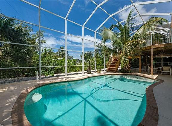 New 70 foot composite lumber dock with 3 boat lifts. Deep water canal with direct sail boat access. No bridges or power lines. 10 minutes to the open water. All decks and steps are new, no maintenance, composite lumber. Large deck on the 2nd floor overlooking the pool and canal. Wood floors in the entire house. Tile in bathrooms. Granite counter tops in kitchen. New refrigerator. Gas stove. Tiled bonus room on the ground floor, 650 square feet, with sliding glass doors overlooking the pool. Plumbed for a bathroom. Could be used for entertaining, another bedroom or possible mother in law quarters. Solar water heater and attac fan along with Solar pool heater gives you low electric bills.