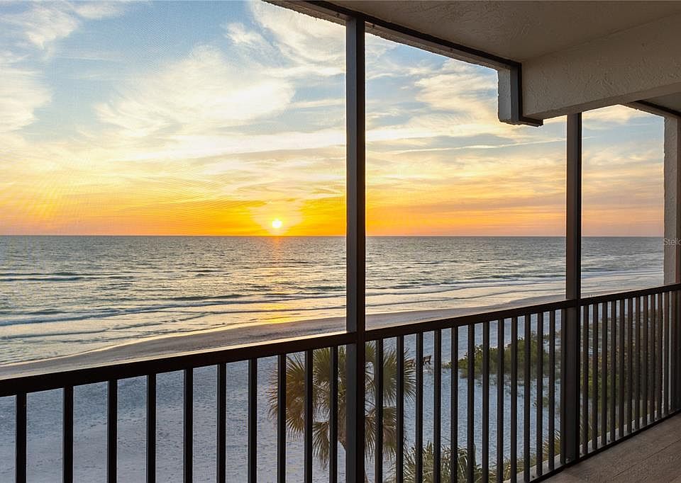 This stunning two bedroom beachfront residence with impact windows and sliders offers breathtaking views of the Gulf from every room. Enjoy incredible beach vistas and stunning sunsets while listening to the tranquil sounds of waves crashing on the shore. The approximately 28' foot screened-in lanai is perfect for enjoying a book, your morning coffee, or just observing boats passing by. The renovated kitchen features granite counters, stainless steel appliances, and a breakfast bar for casual dining. The primary bedroom boasts a large walk-in closet with built-ins and terrace access. Visitors are pampered in the ensuite guest bedroom with their own water views and terrace access. The laundry closet is located near the kitchen for added convenience. Portobello, located at Mid-Key, offers a heated pool, clubhouse, a tennis court, kayak storage, and a community day dock for fishing or docking a boat for the day. With easy access to Sarasota Bay and miles of white sand beach to explore, residents and visitors can have the best of both the Gulf and the Bay. The property is also close to Longboat Key's shops, restaurants and Publix, as well as the restaurants and shopping on St. Armand's Circle and the arts and culture located in nearby downtown Sarasota. This is the perfect beach getaway for those looking to own a piece of paradise in a prime location. Don't miss out on this ideal opportunity to enjoy Longboat Life at its finest.