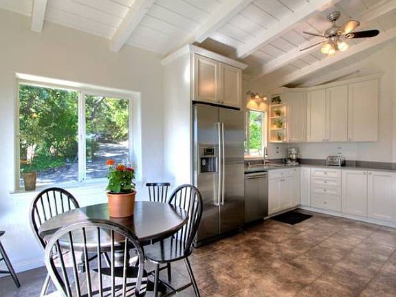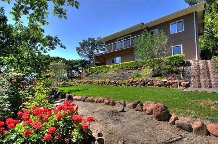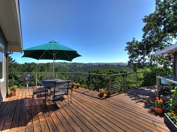 This Updated Oasis is nestled on a Secluded Lot in the Lafayette Hills and features Spectacular Panoramic Views and Stunning Sunsets. Newly Remodeled Eat-In Kitchen (2010) boasts Silestone Counters and Stainless Steel Bosch Appliances. The private drive from Judith Lane provides access to this Serene Setting and instantly captures its beauty. Enjoy these Wonderful Vistas throughout the interior of the home as well as on the large Wrap-Around Deck, Spa, Sport Court and Flag Stone Patio. Arched Doorways, Vaulted Wood Beamed Ceilings, Hardwood Flooring, Updated Fireplace & Updated Master Bathroom make this home a Must See! Entry Level 2 Bedrooms with vaulted wood beamed ceilings, overhead lighting & hardwood flooring. Remodeled Kitchen (2010) featuring: Silestone counters; white cabinets; tile flooring; arched doorway; stainless steel Bosch appliances including a Counter Depth Fridge; 2 new dual pane windows; new sliding glass door to deck and breakfast nook with views. Updated Bathroom featuring tile flooring & shower over tub. Living Room with hardwood flooring; vaulted wood beamed ceiling; updated wood-burning fireplace with flagstone surround & mantle; new glass sliding door leading to deck w/ panoramic views. Dining Area with vaulted wood beamed ceiling, hardwood flooring & new dual pane window framing the gorgeous Lafayette Sunsets. Lower Level Master Bedroom with walk-in closet, crown molding, overhead lighting and door leading to private flagstone patio. Beautifully updated master bathroom featuring tile flooring, plantation shutters and a unique, original craftsman vanity. Bonus Office/Family Room that is currently being utilized as a downstairs children’s bedroom, features overhead lighting and an Anderson slider leading to back yard. Berber carpeting & laundry closet with 220V outlet. Exterior & Other Features Detached 2 car garage with extra storage below. Attached wood decking with contemporary wire railing that wraps around the house leaving plenty of space for outdoor dining, barbecuing and relaxing. Spectacular sweeping views of hills, valleys & sunsets. Beautifully landscaped yard features a lawn area, Sport Court, level play area, flagstone patio & spa with pull over cover and new deck. New roof (2011), dual pane windows, central heating & new A/C.