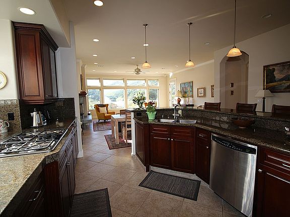 Fabulous single level home overlooking the golf course in sought after Heron Crest section of San Luis Bay Estates. Private and peaceful setting with stunning views. This 3 bedroom has high ceilings and split floor plan with master suite in back with views. Gourmet kitchen opens to great room with fireplace and informal dining. Large formal dining room. Perfect home for entertaining as the great room flows to the large and roomy deck with gas BBQ. Indoor laundry with sink and lots of storage. Central vac system. Low maintenance landscaping. Solar and batteries for off-grid power. Electric car charger hook-up. Fantastic location, you will love it!