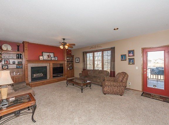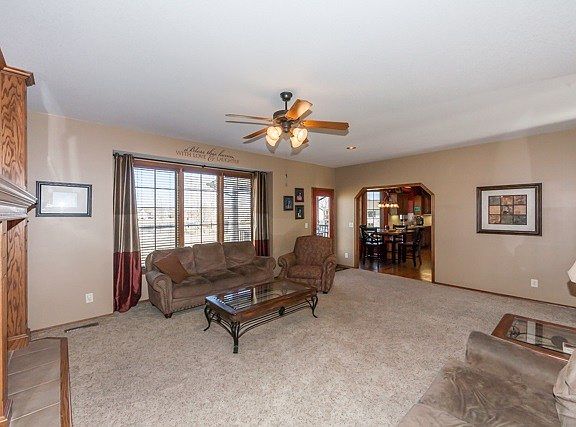 Remarkable home in Forest Lakes sits on a 1/2 acre lot with lake view and access. Home has 5 bedrooms plus a bonus room, 4.5 bathrooms, and lot of living space. On the main floor there is a formal living room with a bay window - could also be used for an office, music room, or library. There is a large main floor family room with a gas-log fireplace, book cases, and a great view of the lake. The kitchen is spacious with an island, pantry, desk, and stainless steel appliances including a gas stove, microwave, dishwasher, and refrigerator. There is an informal eating area open to the kitchen plus a formal dining room with a nook for a buffet or hutch. The main floor also has a laundry room with a drop station and half bath. On the upper level there are 4 bedrooms plus a bonus room. The master suite has a vaulted ceiling with indirect lighting in a decorative ledge. The master bathroom has 2 large vanities/sinks, a whirlpool tub, a shower and toilet behind a door, a large linen closet, and a spacious walk-in closet. There are 3 other bedrooms and two bathrooms on the upper level. One bathroom is a Jack and Jill with 2 sinks. The walk-out basement has a rec room and game room with view-out windows, a corner gas-log fireplace, and a gorgeous wet bar with quartz counter tops. The basement also has a bedroom with a walk-in closet, a bathroom with quartz counter tops and plenty of storage. The home sits on a 1/2 acre lake lot with iron fencing. There is a covered deck, a patio, a basketball court, and the yard has a sprinkler system on a well. Forest Lakes has a neighborhood swimming pool, basketball court, playground equipment, jogging paths, and lakes. The home is in Maize school district and specials are low!