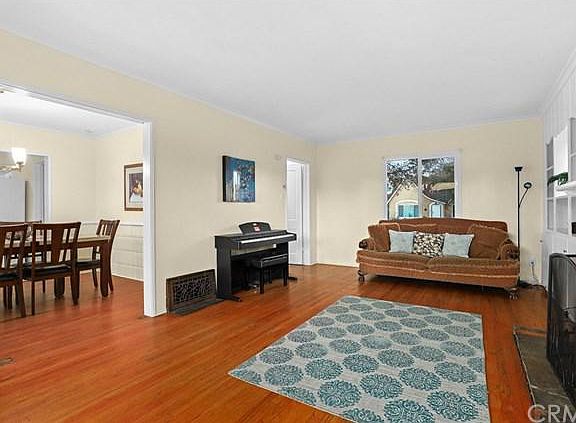 2-Story Traditional House with Nice Curb Appeal Suited on a Tree-lined Street. Bright Living Room Features Handsome Fire Place, Built-in Shelves, Bay Windows, and Hardwood Flooring. Formal Dining Room Offers New Chandelier, Wainscot and French Doors to Large Backyard. Functional Kitchen Provides Abundant Cabinets and Windows Overlooking the Backyard. Laundry Space is Convenient Next to the Kitchen. Huge Bedroom Downstairs with Beamed High Ceiling and Wood Wall. Two Generate Size Bedrooms on the 2nd Floor Share a Bathroom. Fresh Paint Downstairs. Hardwood Flooring & Double Paned Windows Throughout. Huge Backyard with Fruit Bearing Trees and Grass Area. Long Drive Way with 2-Car Detached Garage. Convenient Location with Short Distance to Arceo Park, Community Center, Senior Center and High School. Easy Access to Freeway 10 and 605.