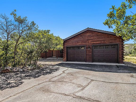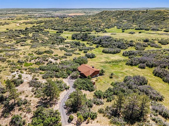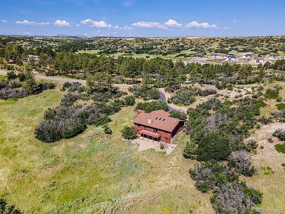 Beautiful log home on 5.69 acres outside of Castle Rock Colorado. Spacious living area hosts a majestic rock fireplace along with 3 bedrooms, 3 bathrooms and 3220 finished square feet with an attached oversized 2 car garage and full finished walkout basement including family room, game room, bedroom and laundry room. The home features a study with a closet and built in bookshelves and also a formal dining room. Don't miss the garden shed for your tools and equipment so you can maximize the garage space to fit 2 cars with room left over. The property boasts enough space for your own private gym or hobbies with plenty of land for privacy and gardening. This quality built log home well maintained and is ready to move into. Seller will consider all reasonable offers so make an offer today to make this your dream country home! Opportunities in Castle Oaks do not come along very often, so schedule your showing today.