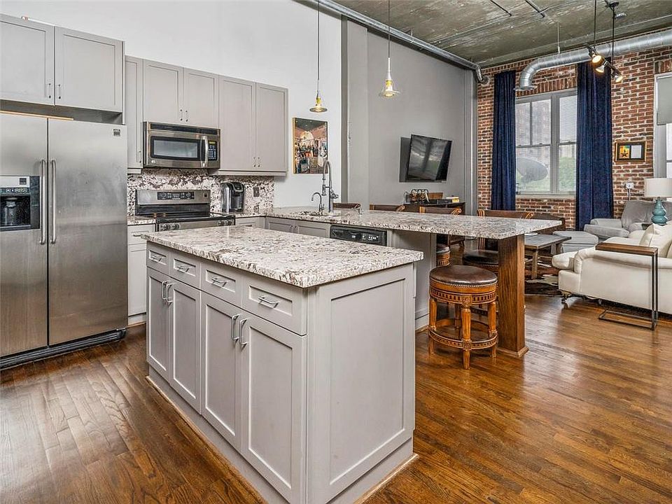 - Kitchen Features: Breakfast Bar, View to Family Room, Stone Counters, Kitchen Island, Cabinets Other, Other