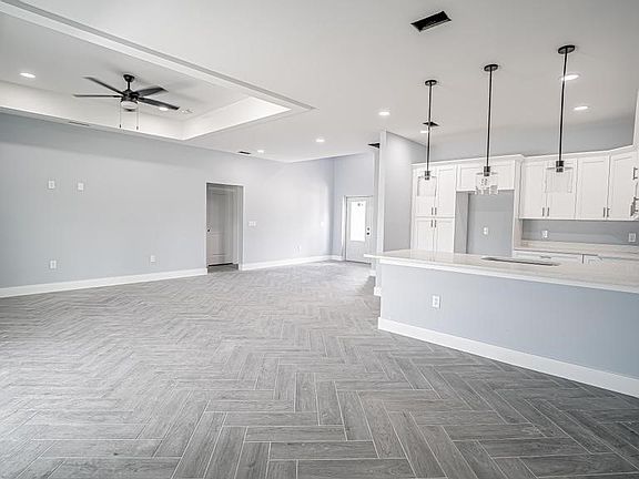 Don't miss the opportunity to own this modern, brand new construction home. Featuring 3 spacious bedrooms, open concept living room with tray ceiling and modern lights fixtures. Beautiful Kitchen with quartz countertops, stainless steel appliances and plenty of storage. Porcelain flooring, Hurricane impact doors and windows, ceiling fans .washer and dryer hookup. Master bedroom has a walk in closet as well as dual sink master bathroom. Extended open lanai, plenty of room for a pool. Schedule a private showing today.