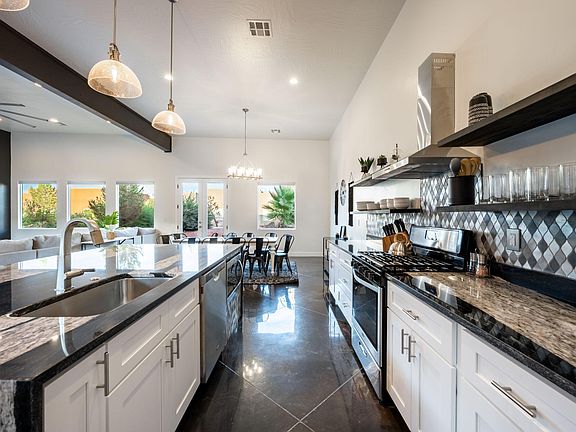 Absolutely stunning, modern vacation home built specifically to accommodate all of your friends and family. This home features 4 bedrooms, 5 bathrooms, a spacious and elegant great room, 2-car garage, and an over-the-top bunk room. The home wraps around a private and secluded outdoor swim spa, barbeque area, and stairs to the rooftop deck with gorgeous views. Located in Sand Hollow Resort near.. Sand Hollow State Park and Zion National Park. The pictures say it all-this modern and pristine home with its black and white theme stands out from all the others. Bring the whole family to this great place with lots of room for fun. While it is approved for nightly rentals, it would also make a fantastic full-time residence or winter home. This home is being sold fully furnished!