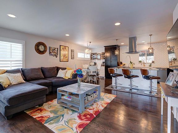 Welcome Home to this Delightfully Designed, remodeled & updated University Hills Home! Lovely open floor plan featuring 5 Beds & 2 baths & over sized heated garage! Beautifully remodeled/updated baths & kitchen w/luxury granite, custom cabs/subway back splash & lighting. Large island w/seating, GE appliance/apron front sink & bar area w/wine cooler. Plantation shutters, hardwood & new flooring/carpet throughout. The basement hosts a family area, storage cabs/shelving, fabulous accent wall, play/workshop area, beds 4 & 5 (non-conforming), bath 2, washer/gas dryer/utility sink & storage area! New roof/furnace area on the list too! Fabulous large lot w/rm for entertaining/playing/toys/putting green & pets. Flagstone fire pit & seating area/large covered back patio w/enclosed entertainment area w/bar seating, & electric 4 tv. Walk to High line canal/Eisenhower Park/playgrounds/rec center/Starbucks/school & fabulous trail system. Great established location! A gem in this market...5 STARS!