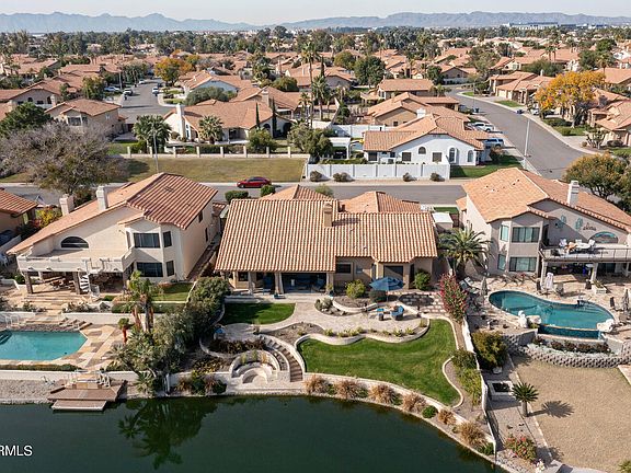 Incredible fully remodeled, water front, golf course view single level home with 3 car garage. This immaculate light bright and open floor plan features top of the line custom designer touches throughout. Resort class backyard features huge covered patio, lush landscaping, water front/waterfall, golf course and San Tan Mountains views. Membership to tennis courts included. You simply must see this incredible one of a kind home.