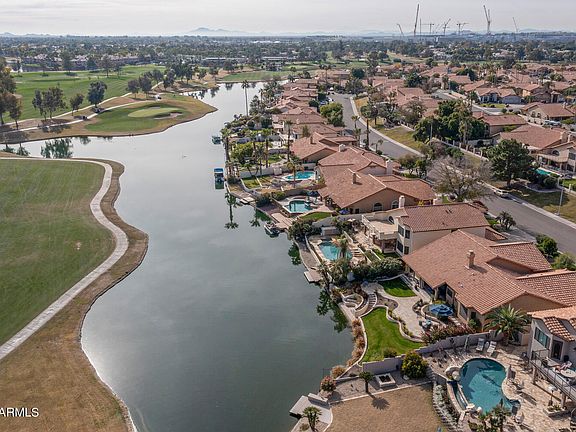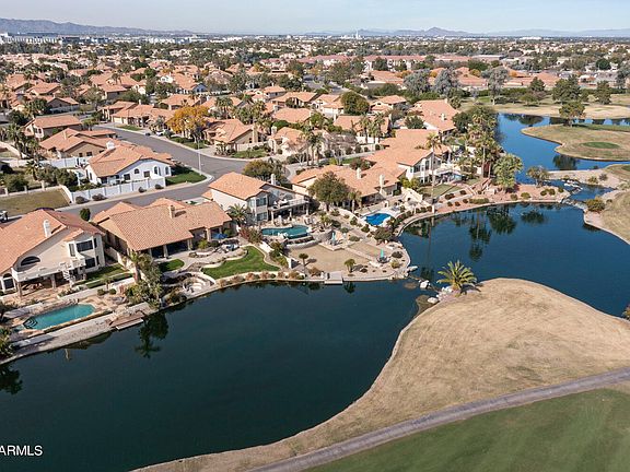 Huge covered patioSingle level homeWater frontLush landscapingGolf course viewResort class backyardSan tan mountains views