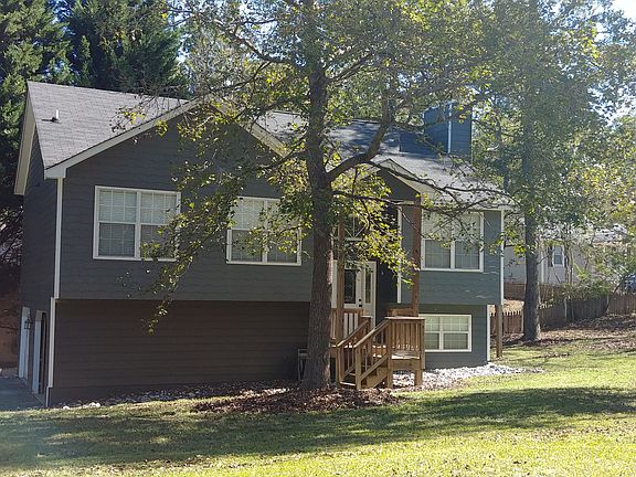 Cozy home located in lake Lanier community South Shore Woods. Side Entry 2 car garage, 2 beds & 2 baths located on main floor w/3rd bedroom on terrace level. New roof, new front porch, new back deck, new Hardi plank/shake siding and cornice, interior/exterior freshly painted. Upgraded lighting/ceiling fans. Instant HOT Tankless water heater. Granite counters through out home. Downstairs bedroom can double as workout/office space with built-in desk. Walking distance to lake and access to deep water boat ramp. Beautiful walking parks near home.