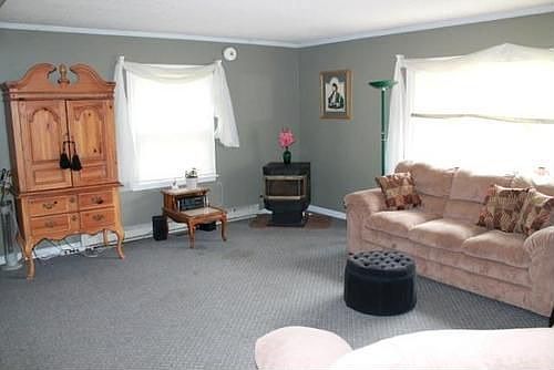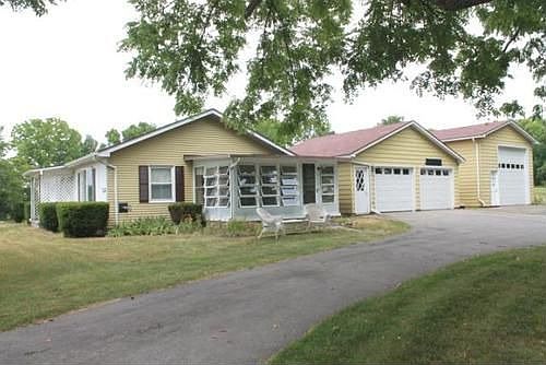 This peaceful country setting is set back over 500 feet from the road, this rare ranch has everything a hobbyist or enthusiast could want! 2 car garage PLUS an additional oversized barn-type building which has held up to 2-4 vehicles plus upper storage! Home has a super open floor plan with large rooms, Master bath, 3 season room, and a walk-out basement with a Bilco door. Handicap accessible from all garages and doorways.