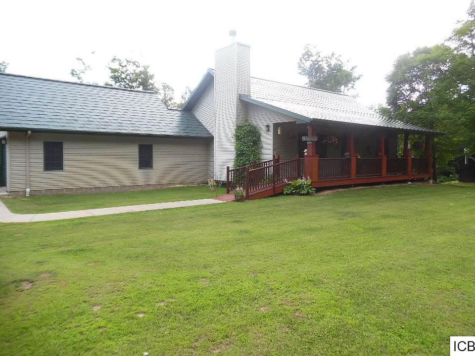 Charming home nestled on 7 beautiful acres near Bass Lake. As you enter the home through the delightful covered front porch you'll take in the stone fireplace, the vaulted ceilings in the open living/kitchen/dining room & will love the deck off the kitchen that overlooks the lovely manicured & landscaped private back yard with garden & fire pit. The main floor laundry/mud room leads into the attached heated 2 car garage. There are 2 bedrooms & a full bath on the main floor. The lower level includes a large family room, the 3rd bedroom & a bath. This is topped off by 50 year steel shingle roof! Don't miss out on this one!