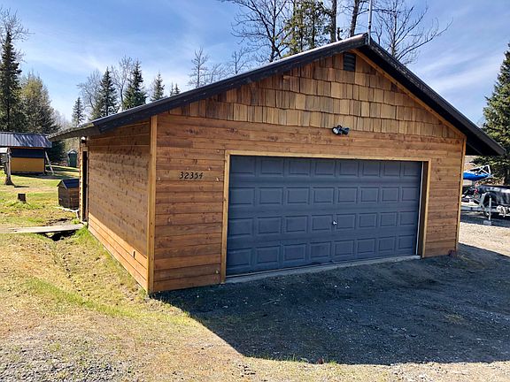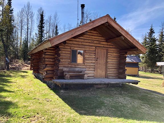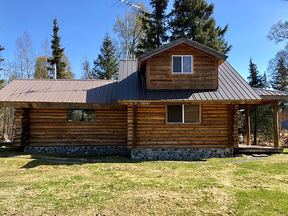 A sweet Alaskan log cabin built from trees off the property looks out on a spacious healthy lawn. There is a awesome smelling cedar sauna with shower, 2 storage sheds, 2 hoop style green houses, wood and equipment storage. Plus 24X24 2-car finished garage and lots of gravel parking.This is the place to be especially in the Summer. Room to park your boat and RV. Pride of ownership shows throughout.