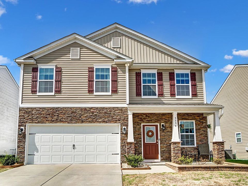Welcome to this elegant and inviting house.Stunning exterior elevation.As you walk in you will be greeted by the formal dining,beautiful wall trim,crown molding, wood laminate flooring throughout downstairs and 9 feet ceilings.open floor plan with cozy living space,breakfast area,kitchen features SS appliances,granite countertops upgraded faucet and tile backsplash,Lots of natural light throughout the house.Enjoy and relax in your spacious primary suite with vaulted ceiling,you will never run out of space with your oversized closet,bathroom features double sink and extended shower. 2 additional bedrooms both with walk in closets,a full bath ,nice size laundry room are all upstairs.Enjoy the outdoor space,perfect for gatherings,amazing sunset view from your back yard everyday.House is in brand new condition without the price tag or the wait.Community is nice and quiet,yet you will be minutes aways from endless dining and shopping options.Community features a pool,cabana and playground.