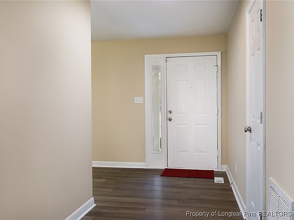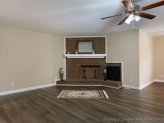 Exciting renovation with many upgrades! Located minutes from I-95 on a dead end street and convenient to downtown and Fort Liberty. Recent updates include all new roof, LVP/carpet flooring, paint inside and outside, inside doors, fixtures, fridge/dishwasher, toilets, and kitchen counters! Reinspection on file to show a majority of repairs found now completed. Big front porch with pretty brick veneer and side entry 2 car garage. Attractive kitchen features quartz counters, subway tile backsplash, unique sink, breakfast bar and nook, and tile floors. Kitchen overlooks the living room with brick surround, wood burning fireplace. Spacious owner's suite with a WIC and tile on the floor and walls in the bathroom. Laundry/mud room between garage and kitchen. Deck overlooks the back yard. County taxes only. The one you have been waiting for is here!