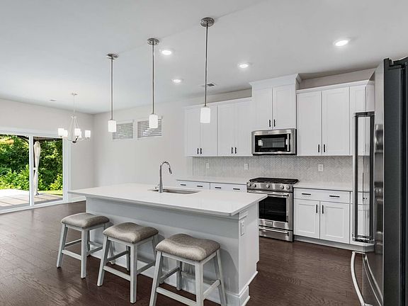 Large islandEpoxy-coated garage floorLarge showerDedicated officeOpen concept floor planTiled backsplashEat-in kitchen