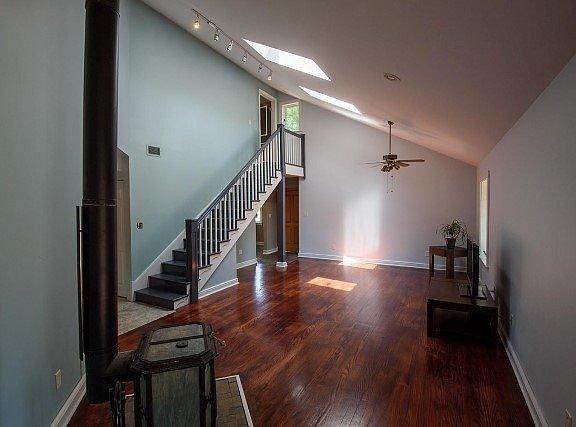 Country Cottage with a Flair! This Home Should be Featured in a Magazine! Located on a Large Private Wooded Lot, yet minutes from New Circle or Hamburg. Imagine All This For Your Own Privacy or For Entertaining: (1) Kitchen with Huge Viking Stove, Commercial Stainless Hood, Granite, Large Table Dining Island, Slate Floor. (2) Living Area with Hard Wood Floor, Soap Stone Wood Heat Stove, Patio Door to a Large Deck, Lofty Pitched Open Ceiling. (3) Master Suite accessed by a Fully Opened Stair Case in the Living Area with Dual Walk In Closets, Private Sitting Room, Balcony Deck. (4) Solar Hot Water and Back Yard Fire Pit. This Home is Marketed as a Winner's Circle Home. Truly a One of a Kind Winner.