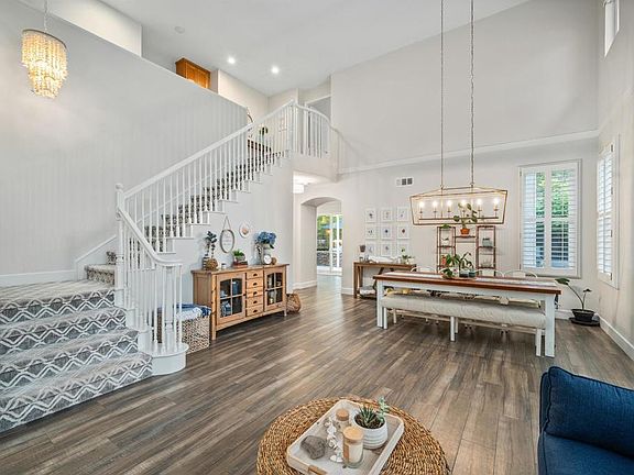 Experience the pinnacle of easy living in this turn key meticulously maintained and upgraded two-story home located in the Rancho Carrillo neighborhood of Quintana. Set on a festive cul-de-sac, this property exemplifies comfort with loads of upgrades and home systems implemented for energy efficiency. Key Features: * Energy Efficiency: Fully PAID SOLAR system with LG Panels (well above current usage) which significantly reduces energy costs, while new high-efficiency York AC and furnace units and whole-house fan maintain a perfect climate indoors throughout the seasons. Additional energy savings are achieved through plantation shutters and remote-controlled blinds that adapt to changing temperatures and sunlight. * Entertainers Kitchen: A delightful space indeed! The kitchen is equipped with stainless steel appliances, sleek quartz countertops, and a dramatic custom hood is complemented by a stunning tile backsplash. The central island is ideal for meal prep and conversation with a wine fridge to a touch of luxury, making the space perfect for company and conversation. * Comfort and Convenience: The home includes a Water Boy whole-house water filtration system and Minka ceiling fans in all bedrooms, ensuring that comfort is felt in every breath. Dual pane vinyl windows paired with updated door hardware enhance both the security and insulation of the home. * Outdoor Living: The backyard is an oasis designed for entertainment and relaxation, featuring a smart Rachio-controlled irrigation system that sustains lush vegetation and diverse fruit trees including plum, persimmon, lemon, and avocado (not grafted to fruit, yet!). Recently installed gutters tie directly into drainage to help maintain and preserve the home. Enjoy evenings around a gas-plumbed fire pit with built-in seating or the soothing sounds of the fountain. * Practical Layout: Ample storage is provided by a three-car tandem garage outfitted with six hanging storage units as well as an outdoor shed. The downstairs includes a convenient bedroom with a full bath, ideal for guests or to use as a home office. * Luxury Finishes: Throughout the home, newer interior and exterior paint, dramatic 5-inch baseboards, recessed lighting, mirrored closet doors, and Serena and Lily light fixtures create an ambiance of refined style. Situated within walking distance to Rancho Carrillo Elementary and close to community amenities, this home is perfectly poised for families or anyone seeking unparalleled comfort and elegance in their living space. Revel in a lifestyle where every detail has been carefully curated to provide an unrivaled living experience.