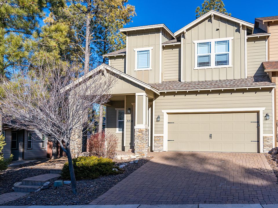In 'Excellent' Condition this south facing townhome is 'Move-In' ready, with 3 bedrooms, 2 1/2 baths, 2 car garage, it is waiting for a full-time owner, student or as a second home.The main living area has an open concept, allowing guest to mingle in the kitchen while also cozying up to the fireplace plus you have a multifunctional room as you enter the home. Along with the appliances, washer, dryer, New Carpet, this home also has AC.The Master Suite and two other bedrooms are extra-large.A bonus, you can walk out the door, within minutes be in the Coconino National Forest, hiking, biking or enjoying the nearby Flagstaff Urban Trial system.You are minutes from both the NAU and CCC campuses, and close to numerous restaurants and grocery stores. Do not miss this opportunity.