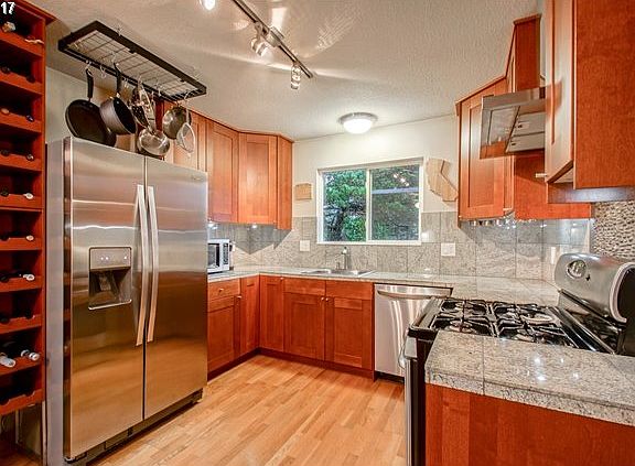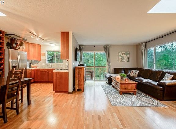 Great Location! Multnomah Village/Hayhurst Area. Contemporary home with an open floor plan. Updated kitchen with newer stainless steel appliances, laminate flooring & tile countertops. Very private home with a fenced yard, covered patio, deck and a beautiful view of matured trees. Fully finished basement with a family room, a bedroom and bath.